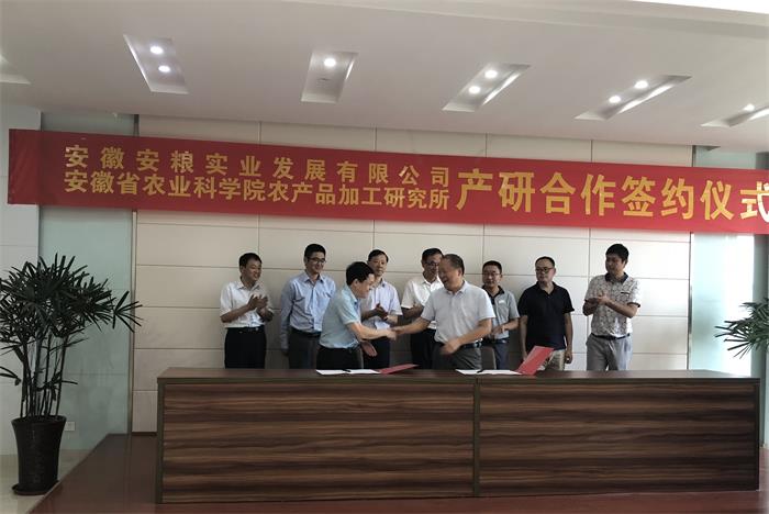 9月19日,安徽省農(nóng)業(yè)科學院副院長畢小彬一行,來到安糧(巢湖)食品工業(yè)園進行調(diào)研考察并簽訂了產(chǎn)研合作戰(zhàn)略協(xié)議。省農(nóng)科院農(nóng)產(chǎn)品加工研究所所長錢坤,安糧集團黨委委員、監(jiān)事會主席、安糧控股副總裁曹訓立,安糧實業(yè)董事長吳國杰等陪同考察并參加簽約儀式。